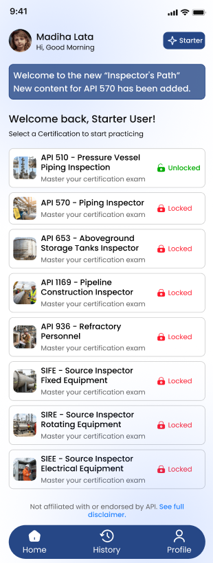 Inspector’s Path helped me understand exam-style questions much better. The practice exams felt very close to the real API 570 test, and the explanations were clear and practical.
